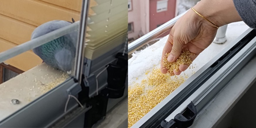 Vatandaşlarda balkonlarına ve pencere önlerine, aç kalan güvercinler için yem ve su bıraktı.