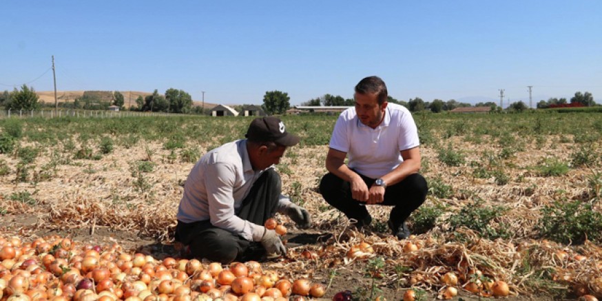 Sabahın erken saatlerinde tarlalara giderek işçilerin yanına geçen Başkan Uzun, onlarla birlikte soğan sökümü yaptı, hasat sürecine eşlik etti.
