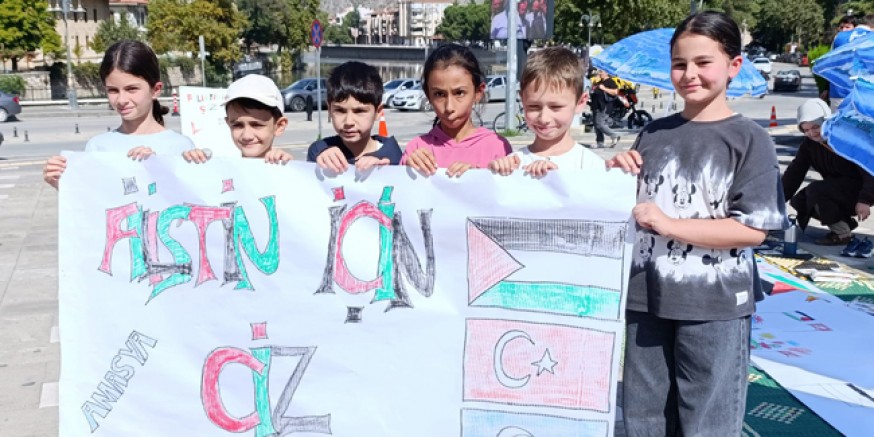 Etkinliğe katılan çocuklar da Filistinli kardeşlerine desteklerini dile getirdi.