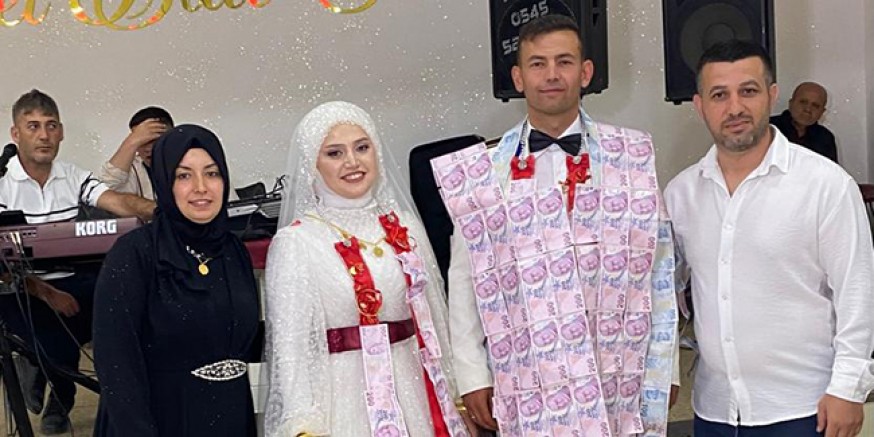 İlçede bulunan Naturel Otel Balo Salonu'ndaki düğünde, para yeleği gören damat ve gelin, duruma şaşırdıklarını söyledi. Davetliler ise 200 liralık banknotlardan oluşan yelek takıyı takan damadın kız kardeşi ve eniştesini uzun süre alkışladı.