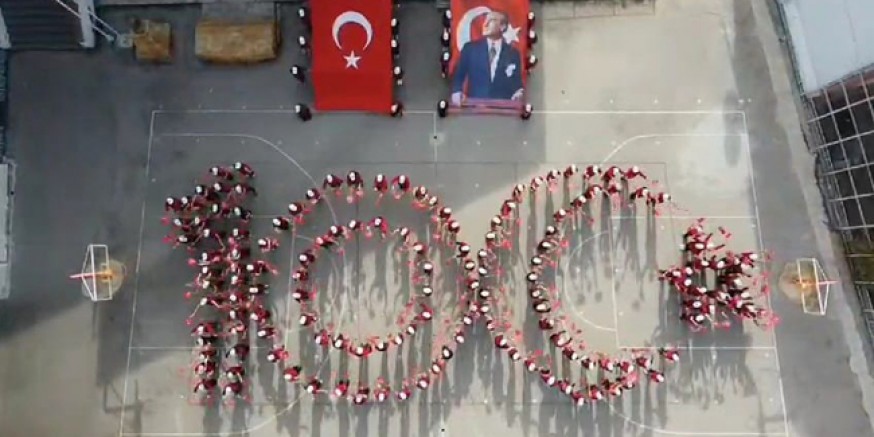 Amasya’da Cumhuriyetin 100'üncü yılını kutlamak amacıyla lise öğrencilerince "100. yıl" koreografisi oluşturuldu.