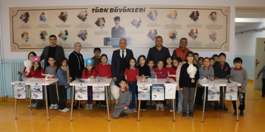 Okul öğretmenlerinden sınıf öğretmeni olan Turgut Öztürk, “Yerli malı haftası dolayısıyla okul idaremiz ve öğretmen arkadaşlarımızla farklı ne yapabiliriz diye düşündük. TUSAŞ ile iletişime geçtik ve milli savunma sanayimize ait model uçaklarla öğrencilerimize milli bilinci kazandırmak istedik.”