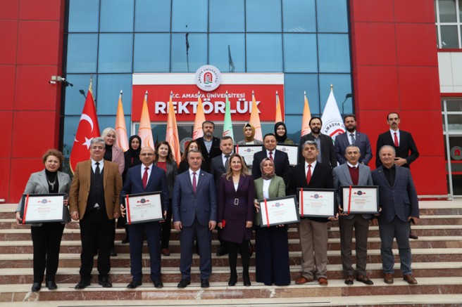 Programda, Amasya Üniversitesi Rektörü Prof. Dr. Süleyman Elmacı, Amasya Üniversitesi Rektörlüğü adına Turuncu Bayrak Sertifikalarını Genel Sekreter Duran Çuhadar’a, Hüseyin Hüsameddin Yasar Kütüphanesi adına Kütüphane ve Dokümantasyon Daire Başkanı İlhami Türk Yılmaz’a, Fen Edebiyat Fakültesi adına Dekan Prof. Dr. Dudu Duygu Kılıç’a, Merzifon İktisadi ve İdari Bilimler Fakültesi adına Fakülte Sekreteri Mustafa Ünler’e, Yabaıncı Diller Yüksekokulu adına Yüksekokul Müdürü Doç. Dr. Melike Baş’a, Merzifon Meslek Yüksekokulu adına Prof. Dr. M. Burak Bilgin’e, İlahiyat Fakültesi Adına Dekan Yardımcısı Doç. Dr. Recep Orhan Özel’e ve Yeşil Bayrak sertifikasını Dr. Öğretim Üyesi Abdülhamit Budak’a verdi.