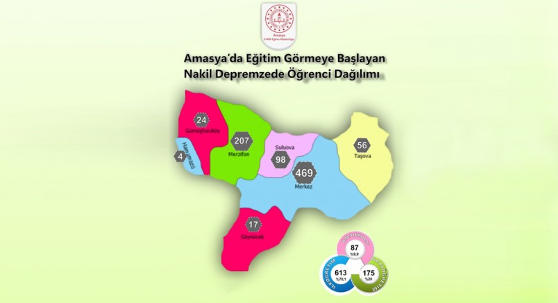 Amasya İl Milli Eğitim Müdürlüğü'nden alınan bilgiye göre, deprem bölgesinden Amasya’ya nakli gerçekleştirilen öğrenci sayısının 875 olduğu ifade edildi.