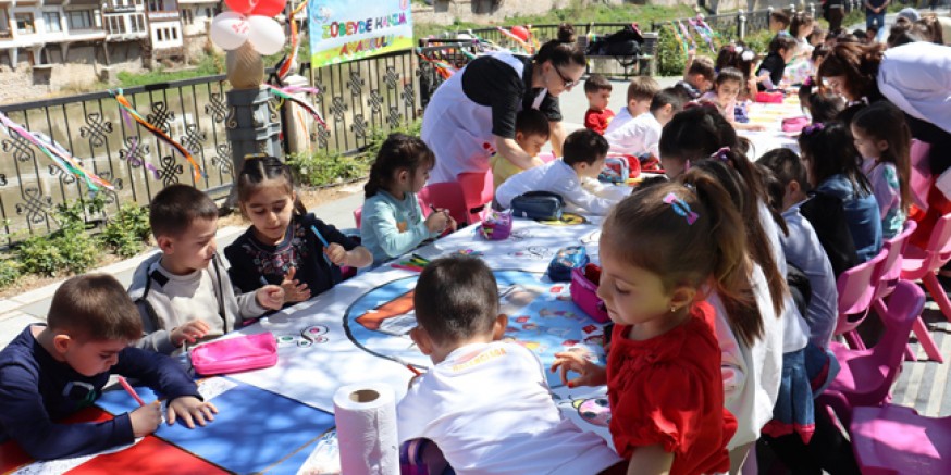 Zübeyde Hanım Anaokulunda 23 Nisan’a özel olarak hazırlanan büyük boyama sayfası, çocukların el becerilerini sergilediği ve hayal gücünü özgürce yansıttığı bir alan oldu. Öğrenciler, Yeşilırmak kenarında rengârenk boyalarla sayfayı tamamlayarak bayramın coşkusunu kutladılar.
