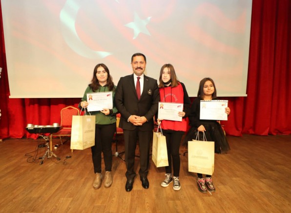 Ardından Vali Mustafa Masatlı, Gazi Mustafa Kemal Atatürk konulu kompozisyon, resim ve şiir yarışmalarında dereceye giren öğrencilere başarı belgesi ve hediyeler verdi.