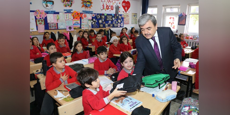 İl Milli Eğitim Müdürü Mehmet Türkmen, Serdar Zeren İlkokulu'nu ziyaret ederek Bakan Tekin’in emanetlerini öğrencilere teslim etti.