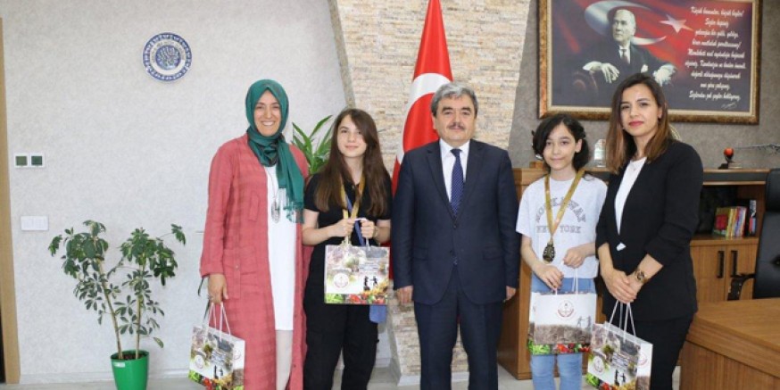 Kazandıkları madalyaların heyecanını İl Millî Eğitim Müdürüyle paylaşan gençlere Mehmet Türkmen hediye takdim ederek öğrencilerin başarıları ile gurur duyduklarını belirtti ve başarılarının devamlarını diledi.