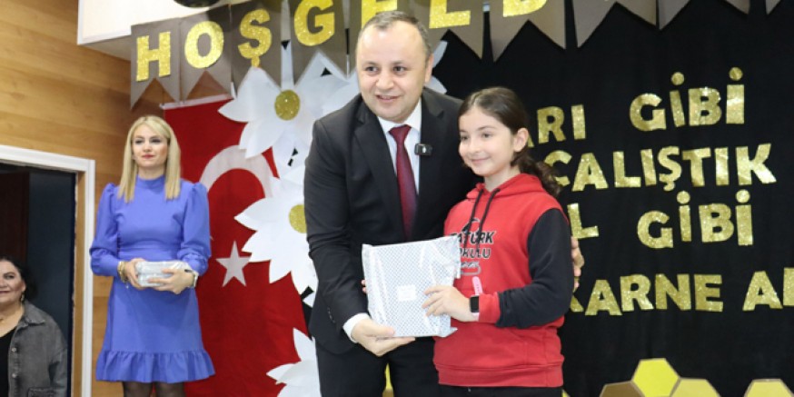 Başkan Sevindi, öğrencilere karnelerini takdim ederken her birine tatillerini verimli geçirmeleri için tavsiyelerde bulundu. Eğitimin, bireyin geleceğini inşa eden en önemli yapı taşı olduğunu vurgulayan Sevindi, çocukların hayallerine ulaşmaları için özverili bir şekilde çalışmaları gerektiğinin altını çizdi.