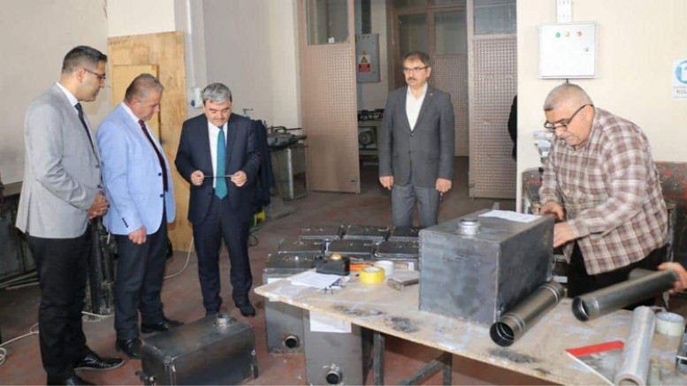 Atölyeleri dolaşarak üretimler ve Ar-ge çalışmaları hakkında bilgi alan İl Müdürü Türkmen daha sonra öğretmenlerle bir toplantı gerçekleştirdi. Deprem bölgesi için özel üretilen sobalarla ilgili Metal Teknolojileri Alanı öğretmenlerinden bilgi alan İl Millî Eğitim Müdürü Türkmen, yapılan çalışmalardan dolayı öğretmen ve öğrencilere teşekkür etti. Üreten Türkiye'nin aydınlık yüzünün mesleki eğitimden geçtiği vurgusunda bulundu.