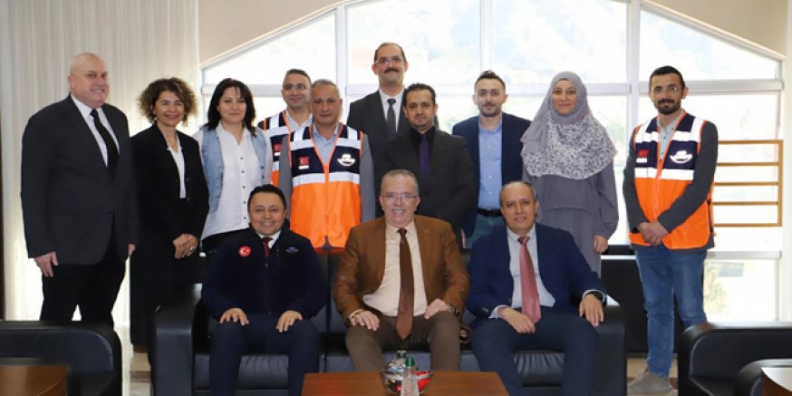 Rektör Prof. Dr. Ahmet Hakkı Turabi hediye takdiminde bulundu. Rektör Turabi konuyla ilgili yaptığı açıklamada, “Ülkemizde afet ve acil durum hallerinde profesyonel ekiplere destek olabilecek bilgi ve beceriye sahip kişilerin sayısını arttırmak amacıyla, İl AFAD Müdürlüğü ile bir protokol yaptık. Bu protokol sonucunda üniversitemiz öğrencileri ile akademik ve idari