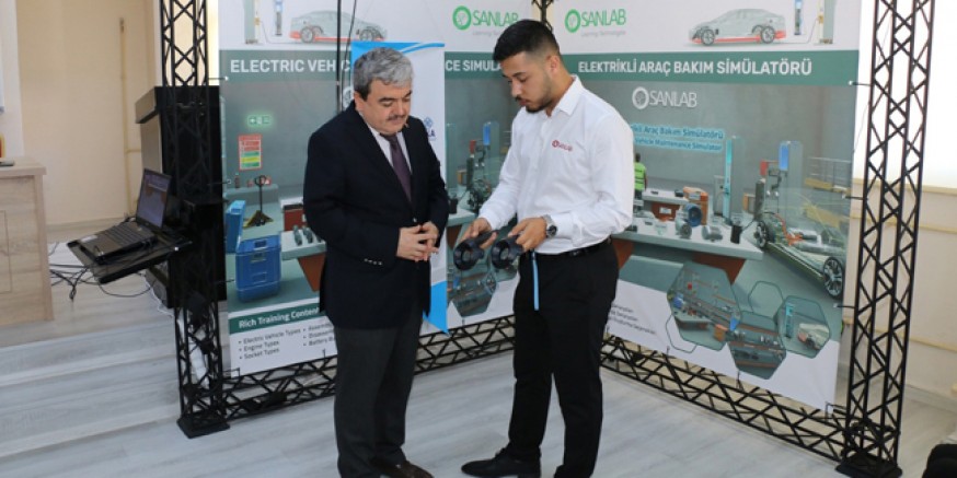 Elektrikli taşıt bileşenlerinin tamamının bulunduğunu simülatörü kullanan öğrenciler sanal ortamda bakım yapabilme deneyimi yaşarken edindikleri bilgileri Türkiye'nin yerli otomobili TOGG ile de pekiştirme fırsatı buldu.