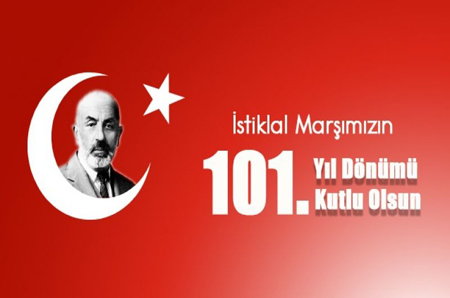 Bu minvalde İstiklal Marşımızın bugün değerini daha iyi anlamak, marşımızı asırlar boyunca nesillere aktarmak, milli mücadeleyi unutturmamak, milli hafızamızı taze tutmak en büyük sorumluluğumuzdur. Ancak bu şekilde her türlü hıyanete karşı durabilir, vatan topraklarına yönelen riskleri ustaca bertaraf edebiliriz. Övünç timsalimiz İstiklal Marşımızın 101’inci yıl dönümünü haklı bir gururla kutluyor; devletimizin kurucusu Büyük Atatürk ve yol arkadaşlarını, aziz şehitlerimizi ve İstiklal şairimiz Mehmet Akif Ersoy’u rahmetle ve minnetle anıyoruz.