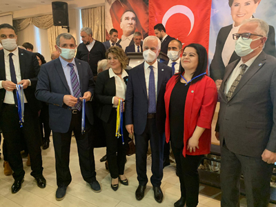 İyi Parti Genel Başkan Yardımcısı Koray Aydın konuşmasının ardından partiye yeni katılan üyelere rozetlerini taktı hayırlı uğurlu olması temennisinde bulundu.