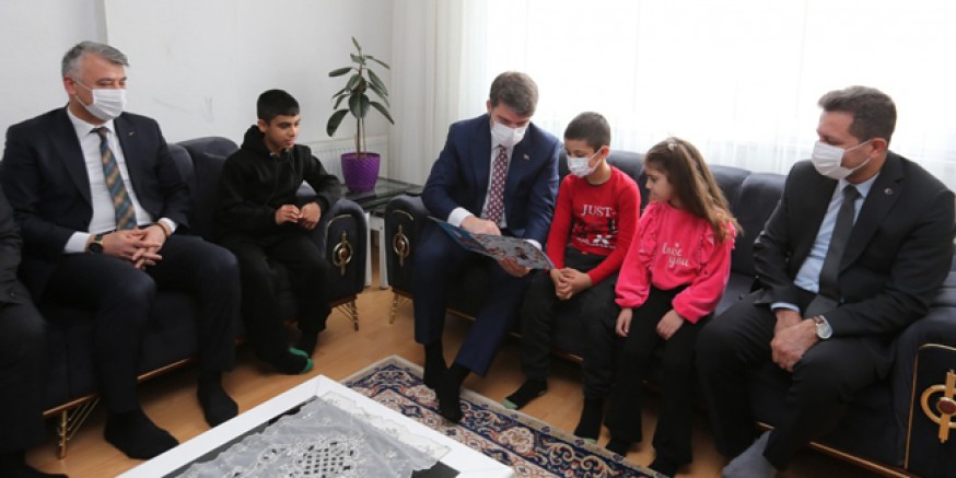 Amasya Valisi Önder Bakan ve Amasya İl Milli Eğitim Müdürü Mehmet Ali Katipoğlu ile evinde ziyaret ederek karnesini verdi.