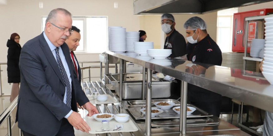 Yemek sırasına girdikten sonra öğrencilerin masasına oturarak onlarla bir süre sohbet eden Prof. Dr. Ahmet Hakkı Turabi, “Amasya Üniversitesi yemekhanelerinde öğrencilerimizin mevsimlere göre gerekli olan kalori ve diğer besin maddelerini karşılayacak şekilde yemek çeşitliliği sunmaya çalışıyoruz. Yemeklerimiz üniversitemiz mutfağında, kendi personelimiz tarafından günlük olarak pişiriliyor. Olabildiğince hesaplı, kaliteli hazırlanan yemekler yine gıda mühendisi ve uzman diyetisyenlerimiz tarafından denetliyor. Yemekhanelerimizde verilen her ayın ilk menüsünü ise sosyal medya üzerinden yapılan anketle belirliyoruz. Gençlerimizle yemekhane ortamında sohbet etmek, onları dinlemek, öğrencilerimizi daha yakından tanımımıza ve neler yapmamız gerektiğini anlamamıza katkı sağlıyor.” dedi.