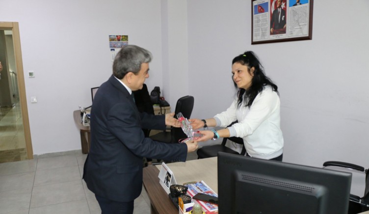 Amasya İl Milli Eğitim Müdürü Mehmet Türkmen, 8 Mart Dünya Kadınlar Günü dolayısıyla, Müdürlük binasındaki kadın çalışanların gününü kutlayıp çiçek takdim etti.