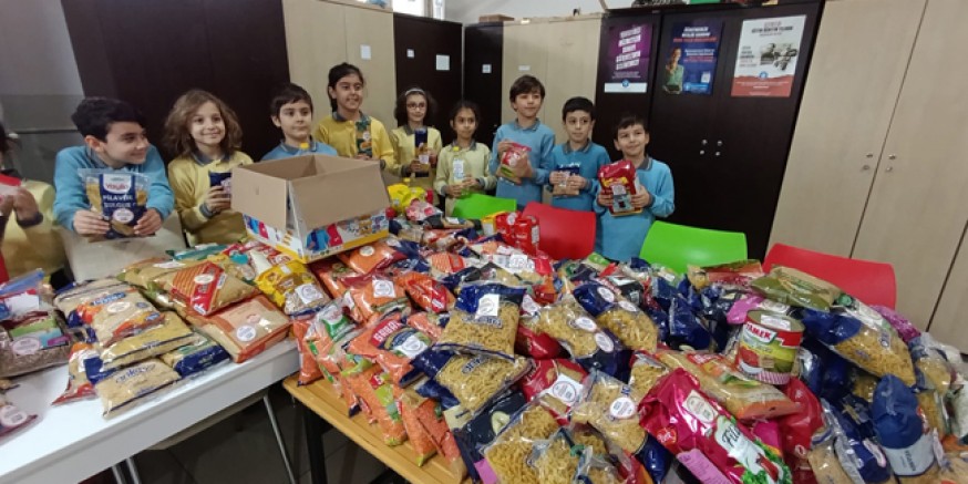 Öğrenciler, öğretmenleri ve velilerinin desteğiyle, soğuk kış günlerinde ihtiyaç sahibi ailelerin yüzlerini güldürmek için kumbaralarında biriktirdikleri paralarla temel gıda malzemeleri aldı. Yardım kolileri, okul idaresinin organizasyonu ile belirlenen ailelere ulaştırılacak.