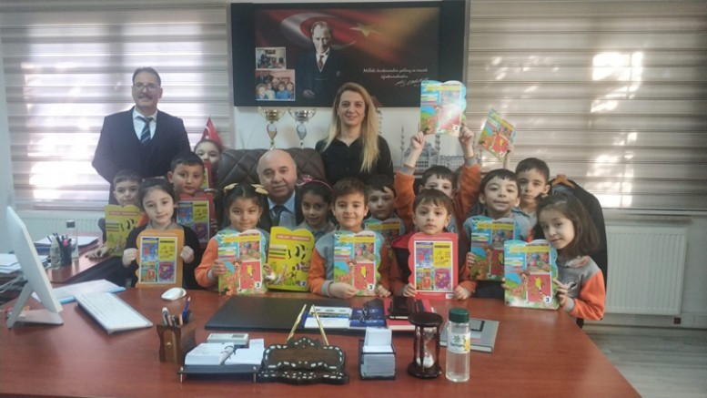 Gümüşhacıköy İlçe Milli Eğitim Müdürü Ercan Gültekin ayni ve nakdi yardımların yanı sıra psikolojik destek yardımlarından dolayı minik öğrencileri ve öğretmenlerini tebrik ederek boyama kitapları hediye etti.