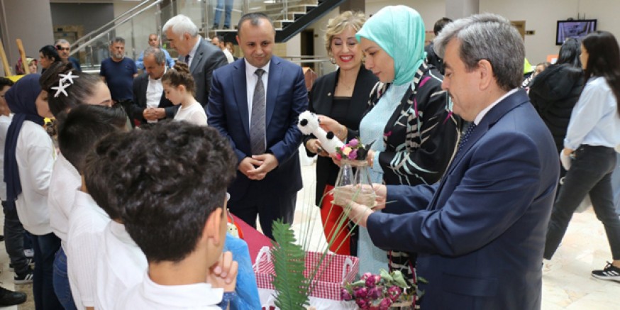 Meral Doruk, Belediye Başkanı Turgay Sevindi ve İl Milli Eğitim Müdürü Mehmet Türkmen, sergideki el emeği ürünleri inceleyerek çocuklarla sohbet etti ve eserler hakkında bilgi aldı. Sergiyi hazırlayan öğrenci, öğretmen ve velilere iş birliği ve emeklerinden dolayı teşekkür ettiler.
