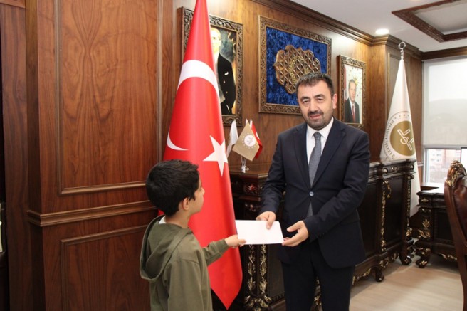 İl Müftüsü Durmuş Ayvaz bu anlamlı bağış için kendileri küçük yürekleri kocaman olan yavrularımızı tebrik etti ve duygu dolu anlar yaşandı
