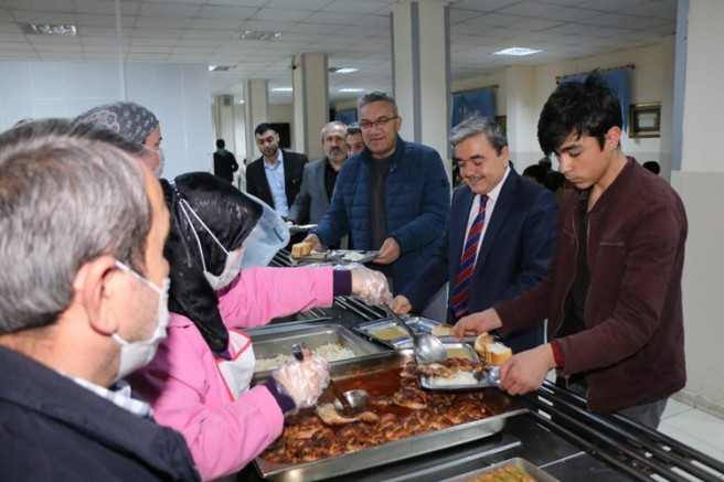 Kentte daha kaliteli eğitim için projeler gerçekleştirdiklerini, bu doğrultudaki çalışmalarının devam ettiğini belirten Müdür Türkmen, Pansiyonlarda kalan ve ailelerinden uzakta Ramazan geçiren öğrencilerimizle birlik, beraberlik, kardeşlik ve hoşgörü ayı olan Ramazan’ın bereketini ve iftar sofralarımızın samimiyetini paylaşmak istediklerini ifade ederek öğrenci yurtlarında bizlere emanet olan gençlerimizle birer büyükleri olarak iftar açmanın mutluluğunu yaşadıklarını ifade etti.