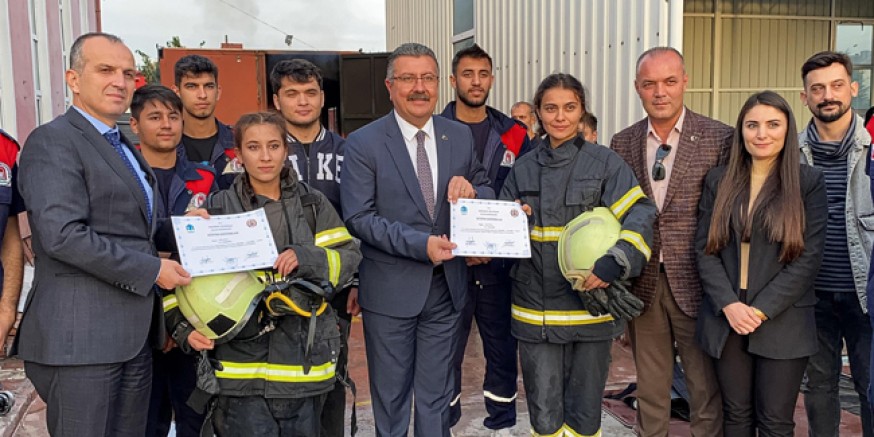 Tüm öğrencilerin başarıyla tamamladığı eğitim sonunda İtfaiye Müdürlüğü tarafından itfaiye eri eğitimi sertifikaları takdim edildi.