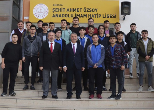 Amasya Üniversitesi Rektörü Prof. Dr. Süleyman Elmacı, mezun olduğu Amasya Şehit Ahmet Özsoy Anadolu İmam Hatip Lisesi tarafından organize edilen “Yarınlarımıza Misafiriz; Mezunlarımızın Dilinden Başarının Sırları” konulu program kapsamında öğrencilerle bir araya geldi.
