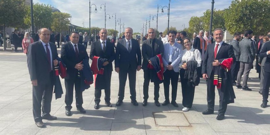 Rektör Turabi’ye Törende, Rektör Yardımcıları Prof. Dr. Murat Kurt ve Prof. Dr. Mehmet Kızılkaya Tıp Fakültesi Dekanı Prof. Dr. Cafer Polat, Suluova MYO Müdürü Dr. Öğr. Üyesi Murat Karavin, Mimarlık Fakültesi’nden Doç. Dr. Murat Gökçe ve Eğitim Fakültesi öğrencilerinden Nazlı Nur Çağlıyan ile Haruncan Koç eşlik etti.