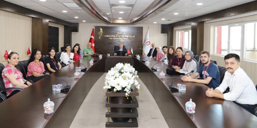 Amasya Üniversitesi Rektörü Prof. Dr. Ahmet Hakkı Turabi ile bir araya gelen öğrenciler staj süreleri boyunca Amasya Üniversitesi’nden kazanmış oldukları deneyimi paylaştılar.