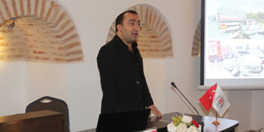 Öğr. Gör. Selçuk Arslan sunumunda trafik kazalarının nedenleri, alınabilecek önlemler ve güvenli trafik kültürünün nasıl oluşturulabileceğini gibi konuları ele aldı.