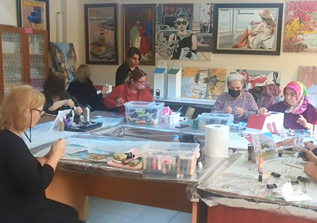Amasya Halk Eğitimi Merkezi'ndeki Dekoratif Tablo yapımı kursunda kursiyerlerde dünyada ilk ve tek olan kanaviçe tekniği kursiyerlere öğretiliyor.