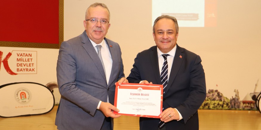 Yoğun programlarının arasında Ankara’dan davetimizi kırmayarak bu semineri vermek üzere üniversitemize teşrif eden, Mesleki Yeterlilik Kurumu Başkanı Prof. Dr. Mustafa Necmi İlhan hocamıza şükranlarımı sunuyorum.” dedi.