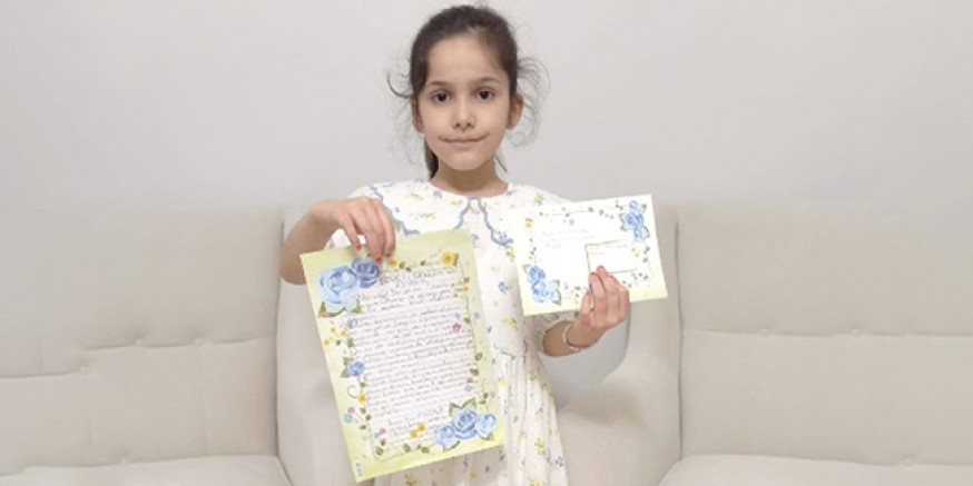 “Merhaba! Ben şu an 1. sınıfa gidiyorum. Okumayı ve yazmayı yeni öğrendim. Bu mektubu kendi ellerimle yazıyorum.”