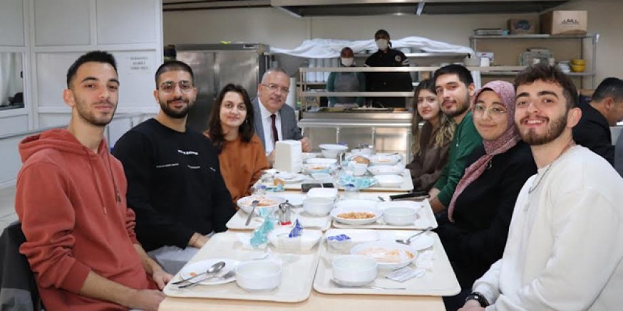 buluştu. Öğrencilerle beraber yemek yiyen Rektör Turabi; öğrencilerin beklentilerini de dinledi.