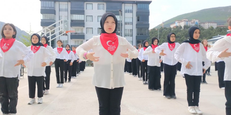 23 Nisan Ulusal Egemenlik ve Çocuk Bayramı dolayısıyla ortaokul öğrencileri işaret diliyle farklı bir etkinliğe imza attılar.